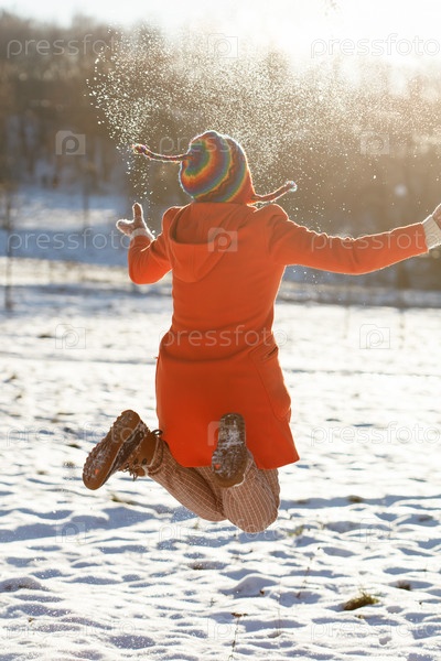 Счастливая женщина в зимнем парке