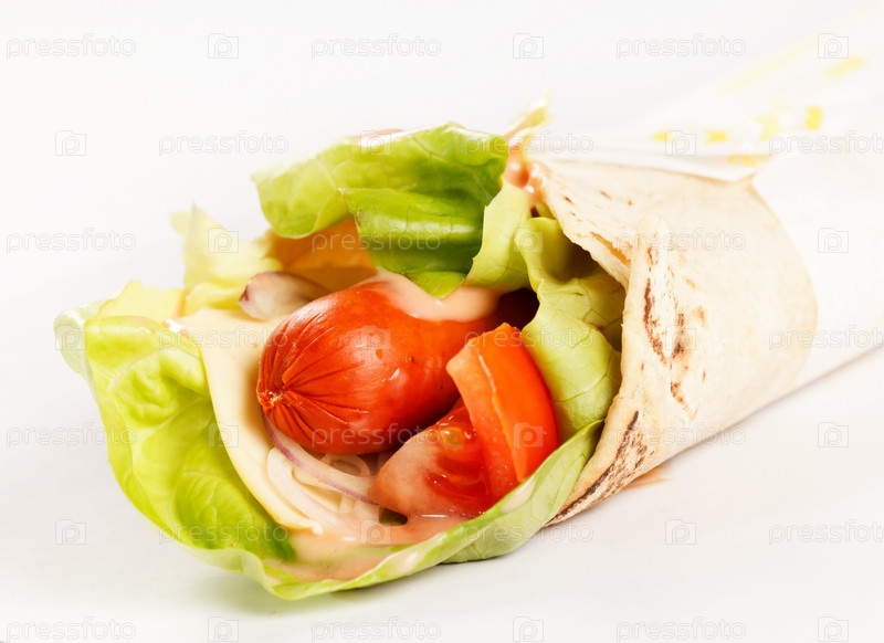 Тортилья с сосиской и овощами