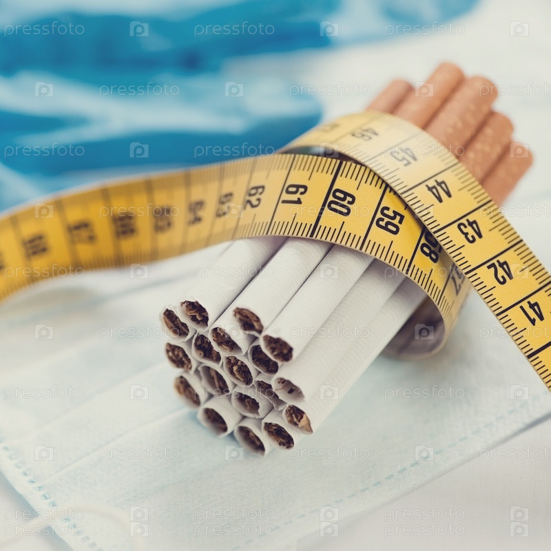Сигареты, обвязанные сантиметровой лентой