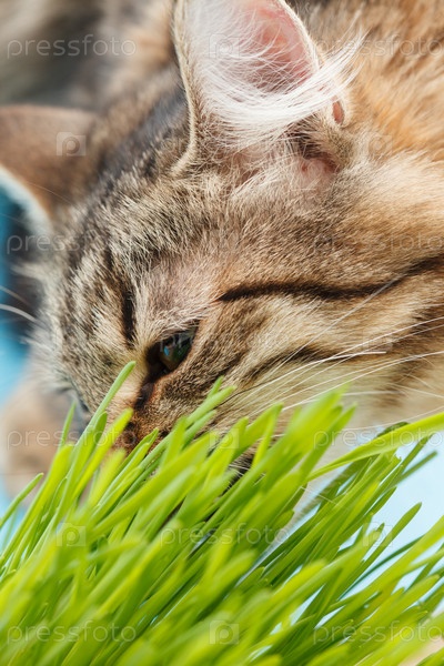 Кошка ест траву