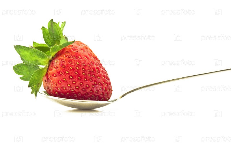 Зрелая клубника на ложке с белым фоном