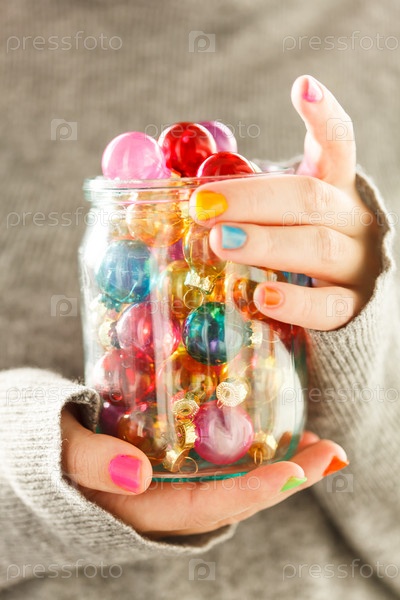 Рождественские шары в руках