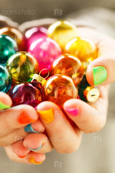 Рождественские шары в руках