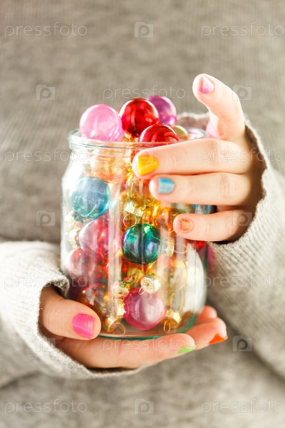 Рождественские шары в руках