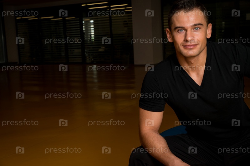 Счастливый мужчина во время отдыха в тренажерном зале