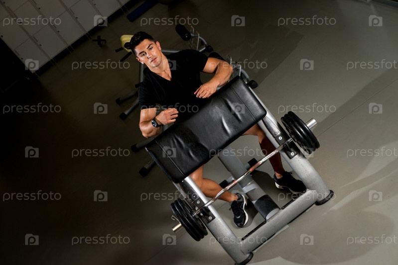 Мужчина отдыхает после упражнений в тренажерном зале