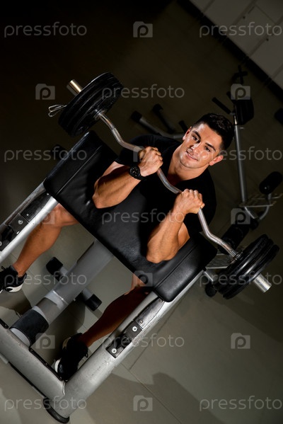 Красивый мускулистый мужчина занимается в тренажерном зале