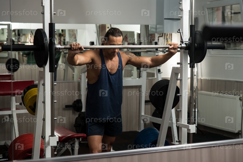 Мужчина опирается на штангу