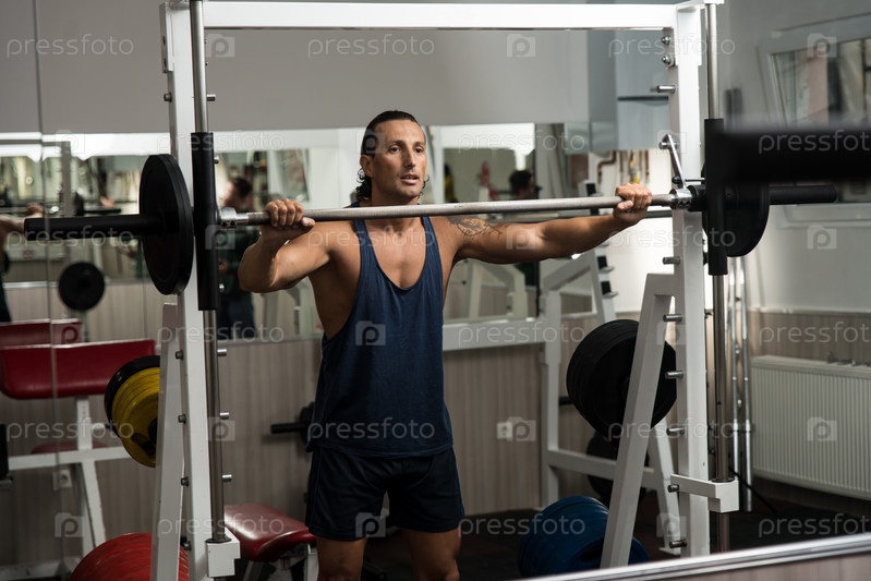 Мужчина опирается на штангу