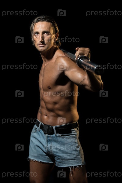 Культурист занимается со штангой