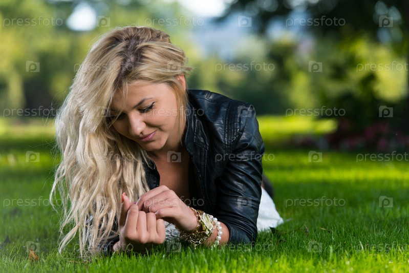 Женщина лежит на траве