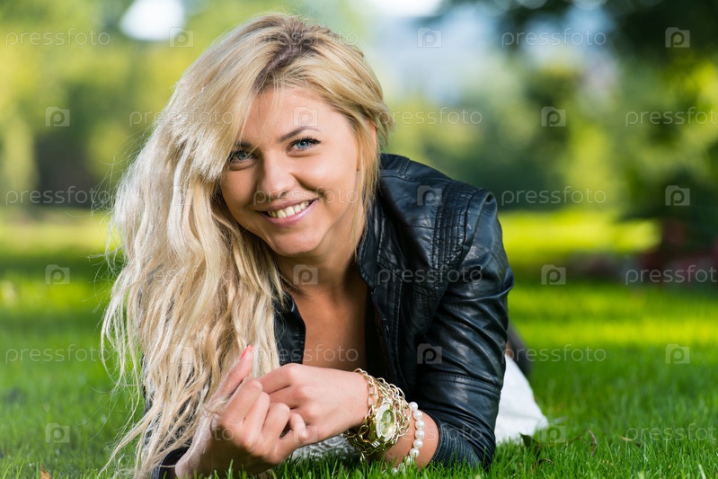 Женщина лежит на траве