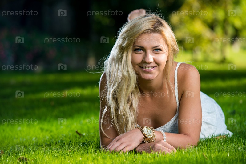 Женщина лежит на траве