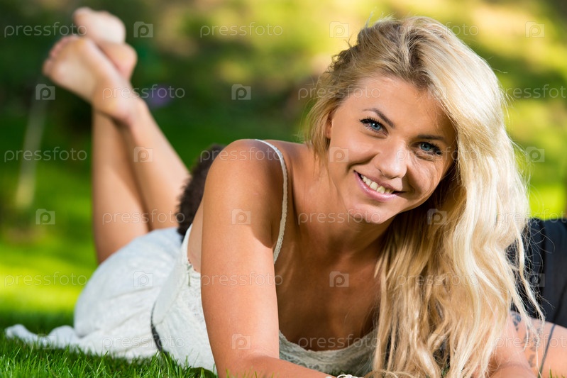Женщина лежит на траве