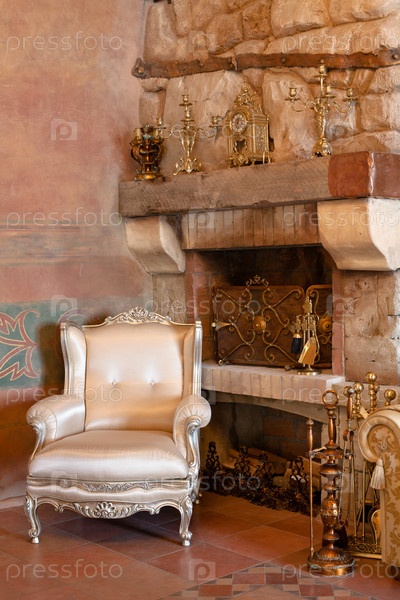 Античный интерьер с мебелью и камином