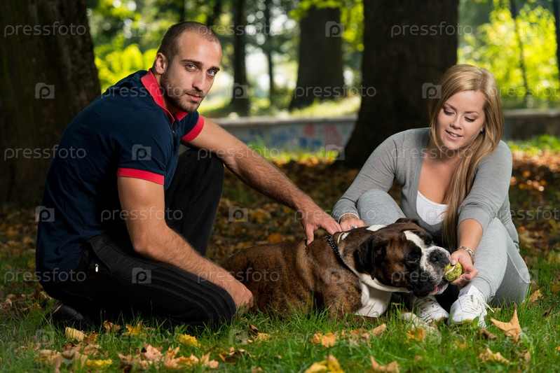 Молодая пара с собакой