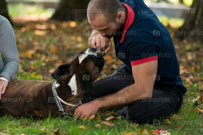 Мужчина играет с собакой
