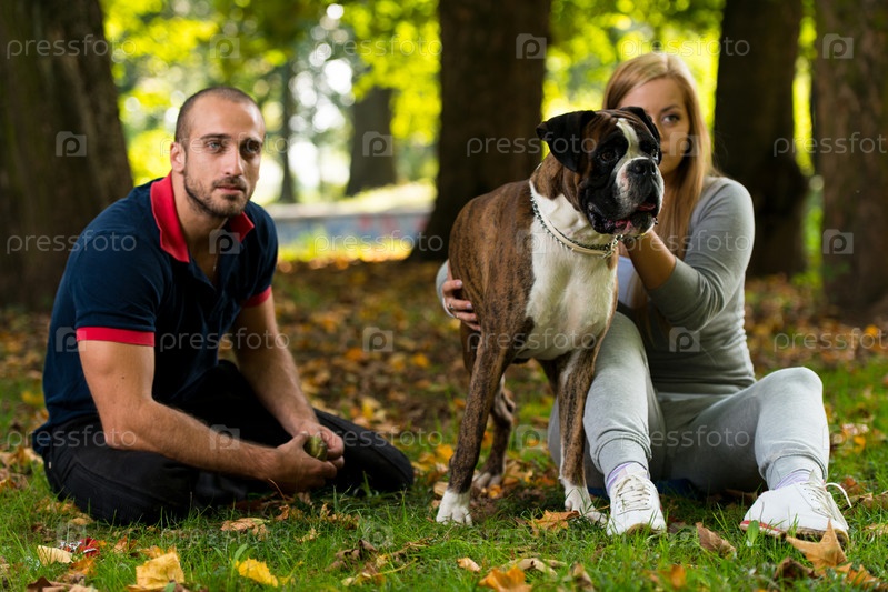 Молодая пара с собакой