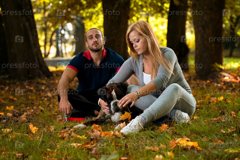 Молодая пара с собакой