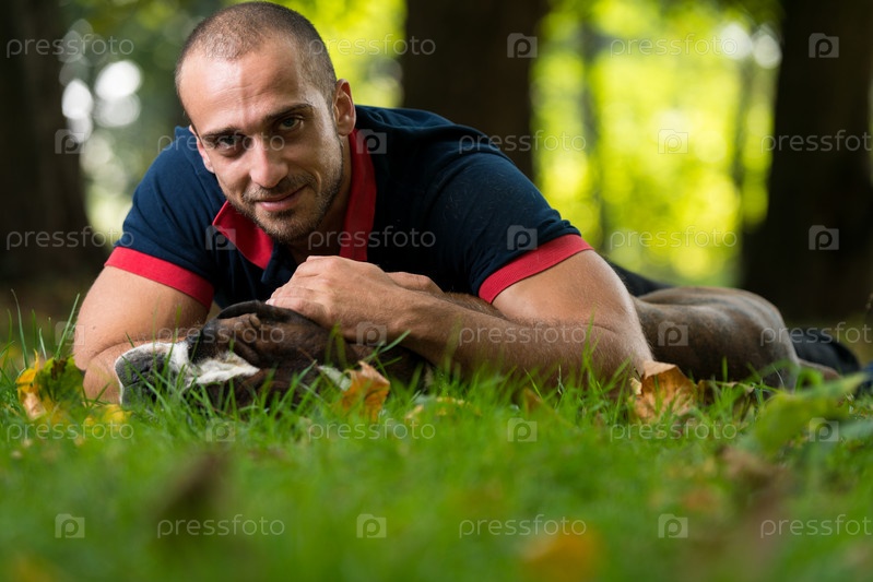 Мужчина играет с собакой