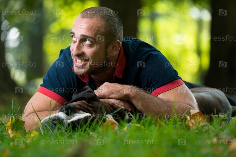 Мужчина играет с собакой
