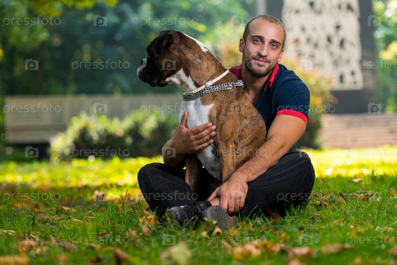 Мужчина гуляет с собакой