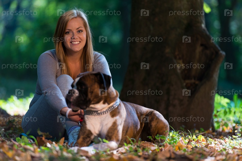 Женщина гуляет с собакой