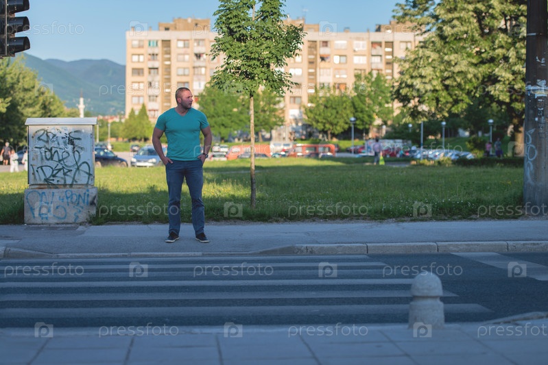 Молодой человек ожидает зеленый свет