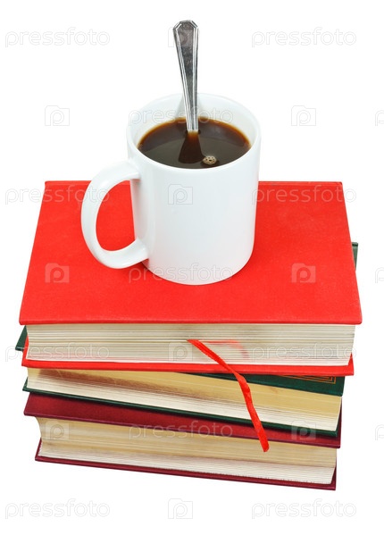 Кружка кофе на стопке книг