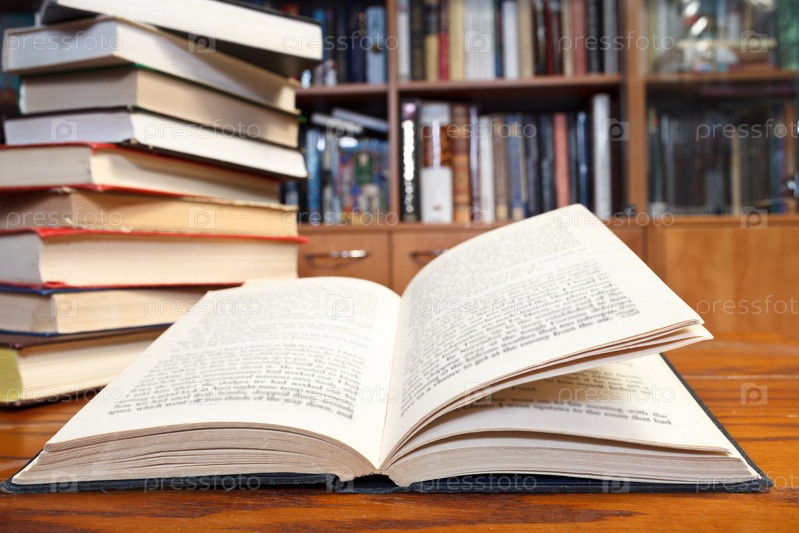 Открытая книга на деревянном столе