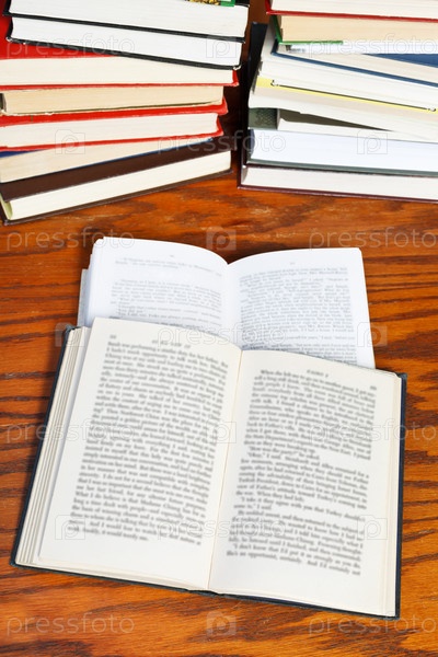 Открытые книги на деревянном столе