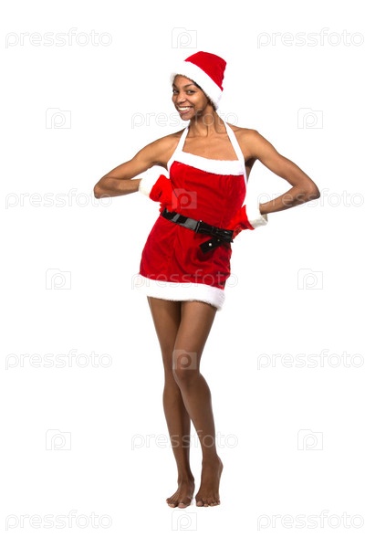 Афро-американская женщина в красном рождественском костюме