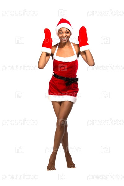 Улыбающаяся темнокожая женщина в рождественском костюме