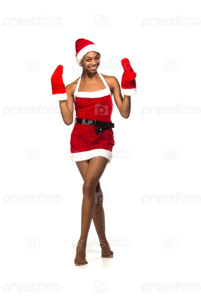 Улыбающаяся темнокожая женщина в рождественском костюме