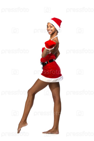 Афро-американская женщина в красном рождественском костюме