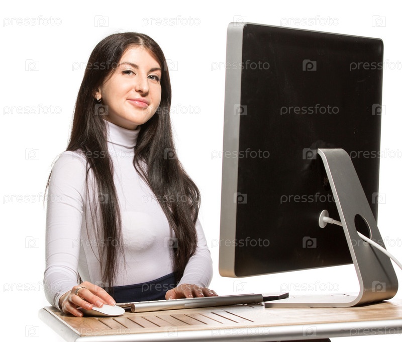 Красивая деловая женщина сидит перед компьютером
