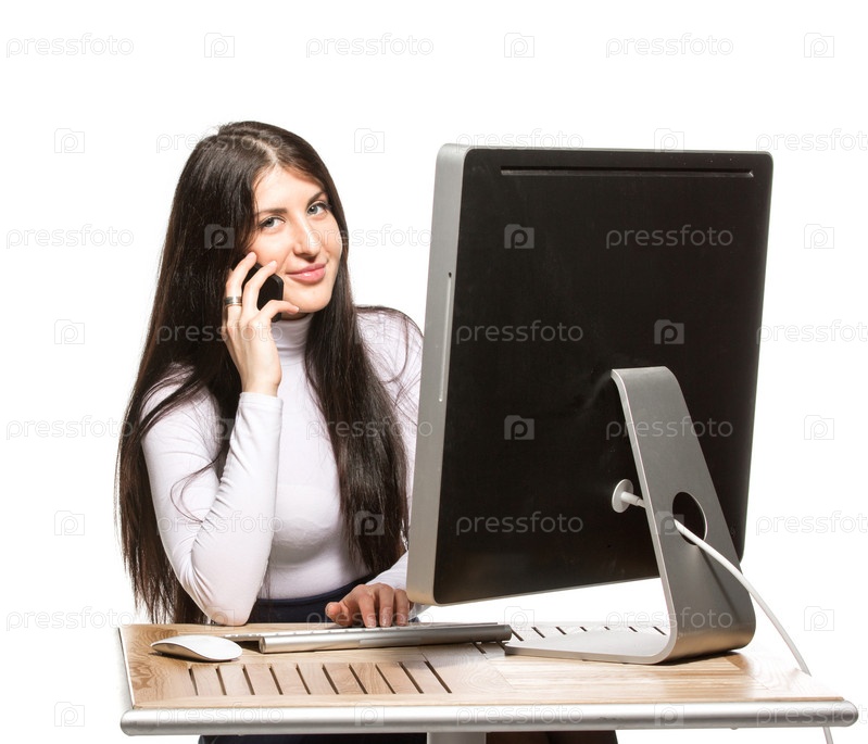 Красивая деловая женщина сидит перед компьютером