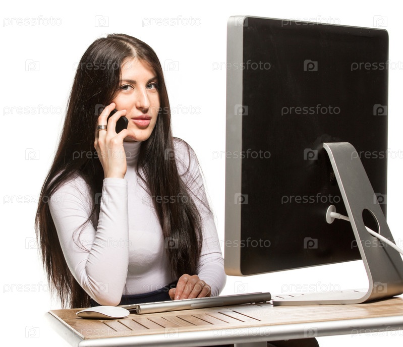 Красивая деловая женщина сидит перед компьютером