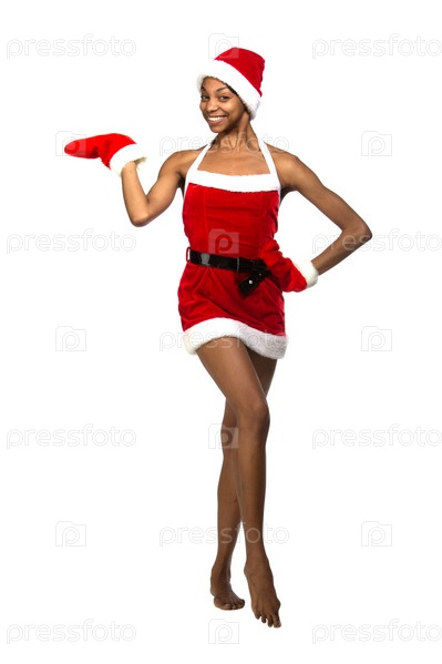 Афро-американская женщина в красном рождественском костюме
