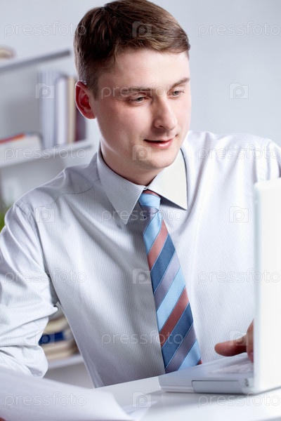 Мужчина, работающий за ноутбуком