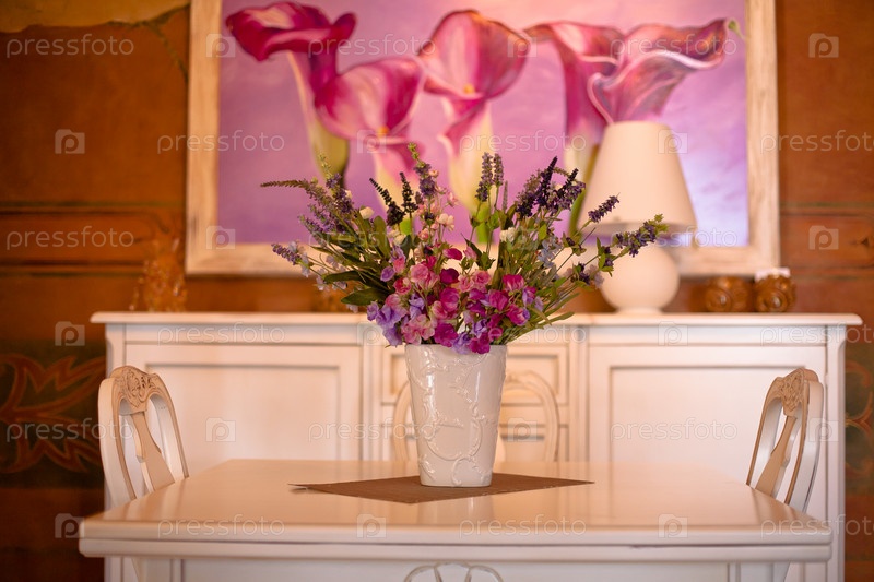 Букет цветов в вазе в роскошном интерьере