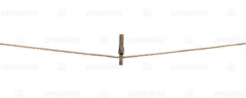 Веревка с прищепками, изолированная на белом фоне