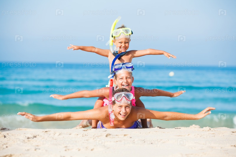 Три счастливых ребенка на пляже