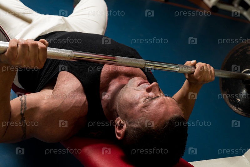 Культурист тренируется со штангой