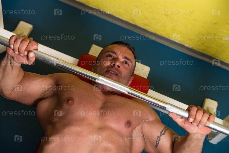 Культурист тренируется со штангой