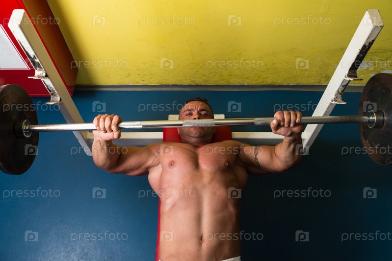 Культурист тренируется со штангой