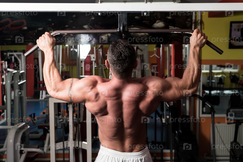 Культурист делает упражнения для спины