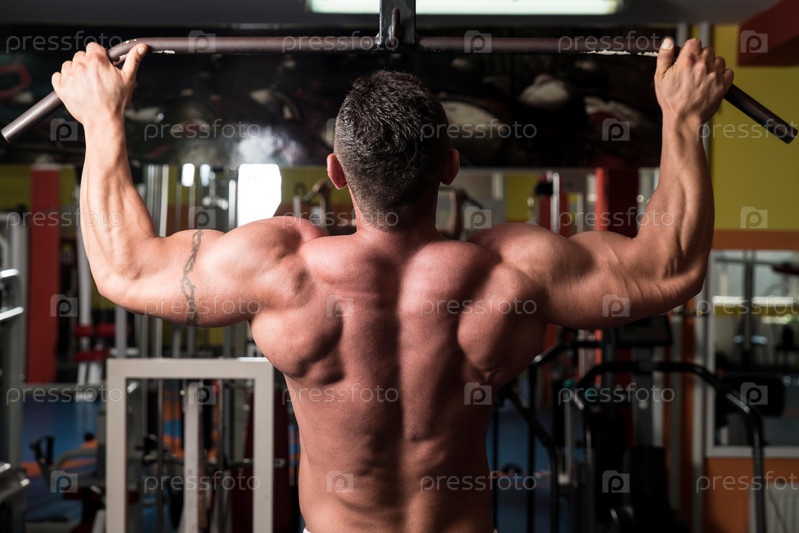 Культурист делает упражнения для спины