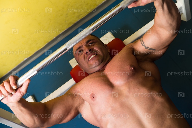 Культурист тренируется со штангой