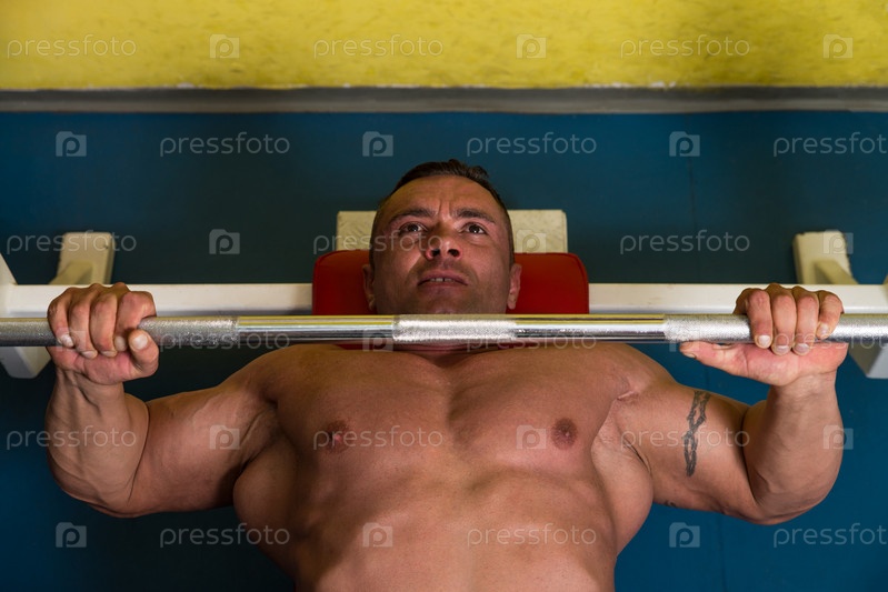 Культурист тренируется со штангой